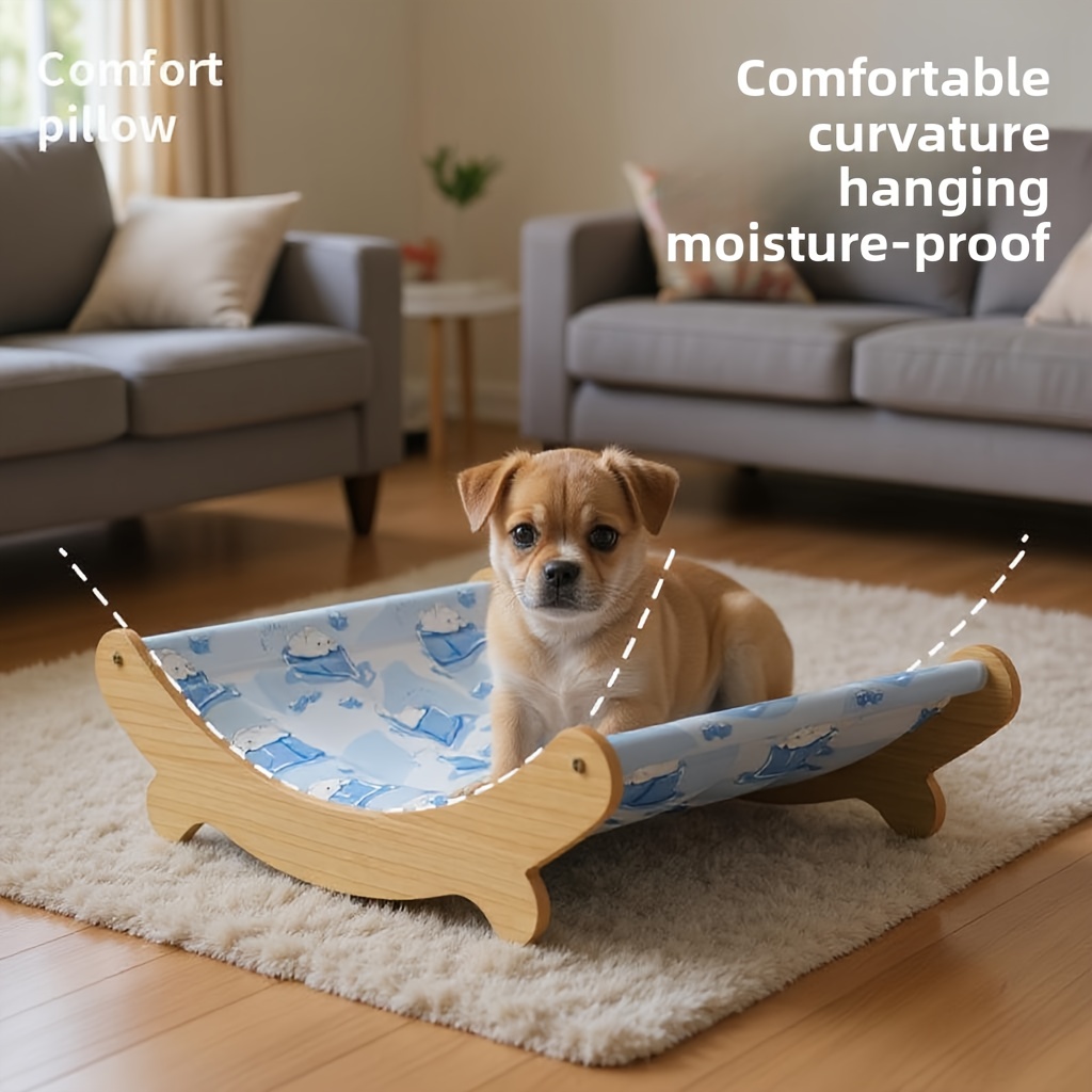Keep your pet comfortable during warm weather with this elevated cooling pet bed, featuring a gel ice pad that activates in just three seconds. The curved hammock design cradles your cat or dog while promoting airflow, making it perfect for balconies, patios, and outdoor spaces. Crafted from durable, sun-resistant polyester with a breathable mesh construction, it withstands the elements while keeping your pet cool. Machine washable for effortless maintenance, this bed combines practical comfort with refined designâan essential addition to your pet's outdoor retreat.